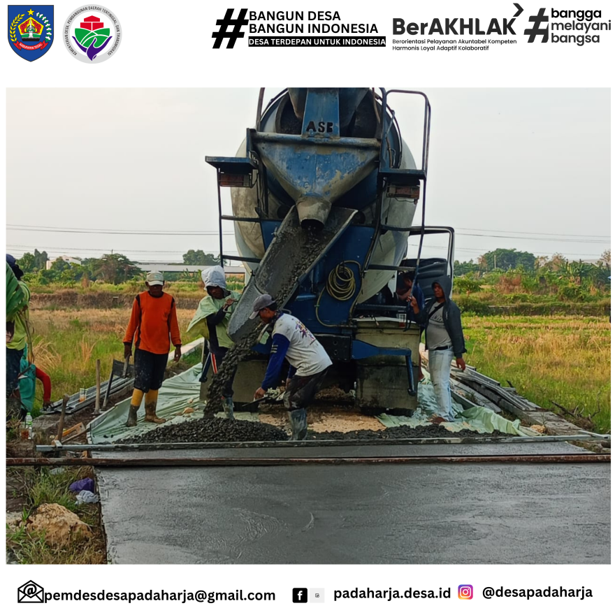 Pengecoran jalan ini merupakan langkah strategis untuk meningkatkan infrastruktur jalan di wilayah tersebut, sehingga memperbaiki aksesibilitas dan mobilitas masyarakat. Dengan menggunakan Dana Desa, pemerintah setempat berupaya memberikan pelayanan yang optimal kepada warga, sekaligus meningkatkan kualitas hidup dan kesejahteraan masyarakat Desa Padaharja. Proyek pengecoran jalan ini diharapkan dapat memberikan manfaat yang nyata bagi pengguna jalan serta mendorong perkembangan ekonomi dan sosial di lingkungan sekitarnya.