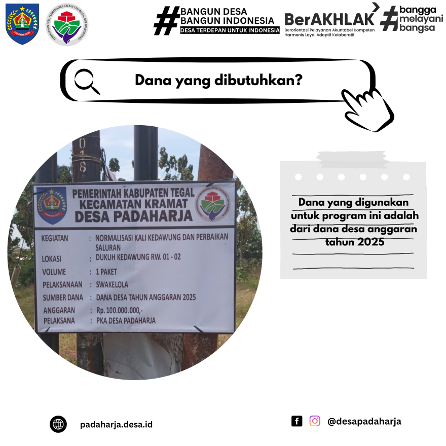Dana yang digunakan dalam program ini adalah dari dana desa Padaharja tahun anggaran 2025. Dana yang dibutuhkan untuk proyek ini diproyeksikan mencapai Rp 100.000.000-,.