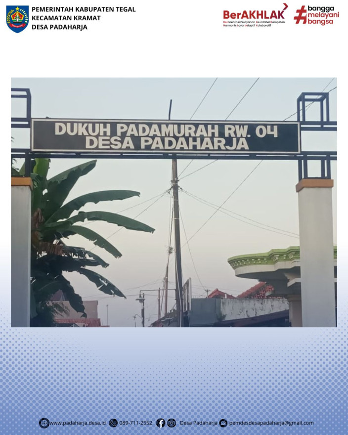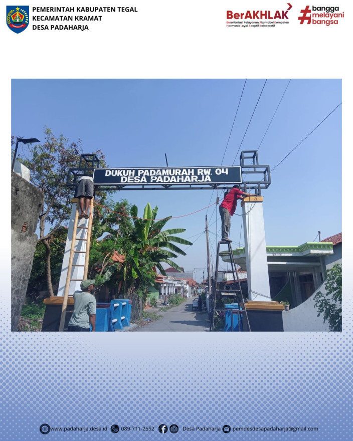 PADAHARJA - Pembangunan Gapura berlokasi di dukuh Padamurah tepatnya di Rw.4 Desa Padaharja Gapura desa, atau gerbang desa, memiliki beberapa fungsi penting. Selain sebagai tanda batas wilayah desa, Gapura juga berfungsi sebagai simbol identitas, penyambutan, dan penambah keindahan desa